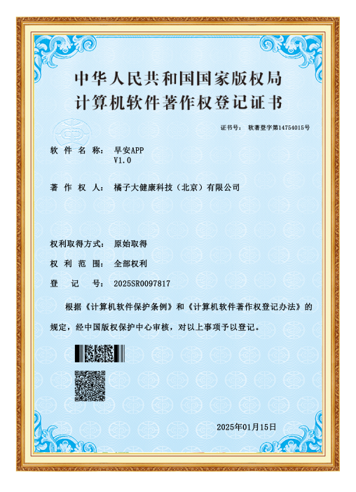 橘子大健康科技(北京)有限公司是一家植根于人工智能与健康管理深度融合的高科技企业,聚焦于心脑血管疾病防控的关键领域,利用先进的可穿戴设备技术、大数据分析、物联网(IoT)以及云计算的强大功能,通过实时监测、智能预警、精准干预等手段,有效降低心脑血管疾病的发病率,改善患者的康复效果,