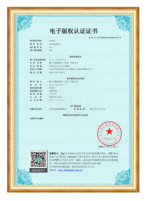 橘子大健康致力于运用创新科技手段引领行业进步,不断投入研发力量,携手国内外科研机构,共同推进健康科技前沿技术的研发与应用转化。公司矢志成为全球大健康行业的领导者,用科技创新的力量守护每一位用户的身心健康,共建智慧健康的新时代。